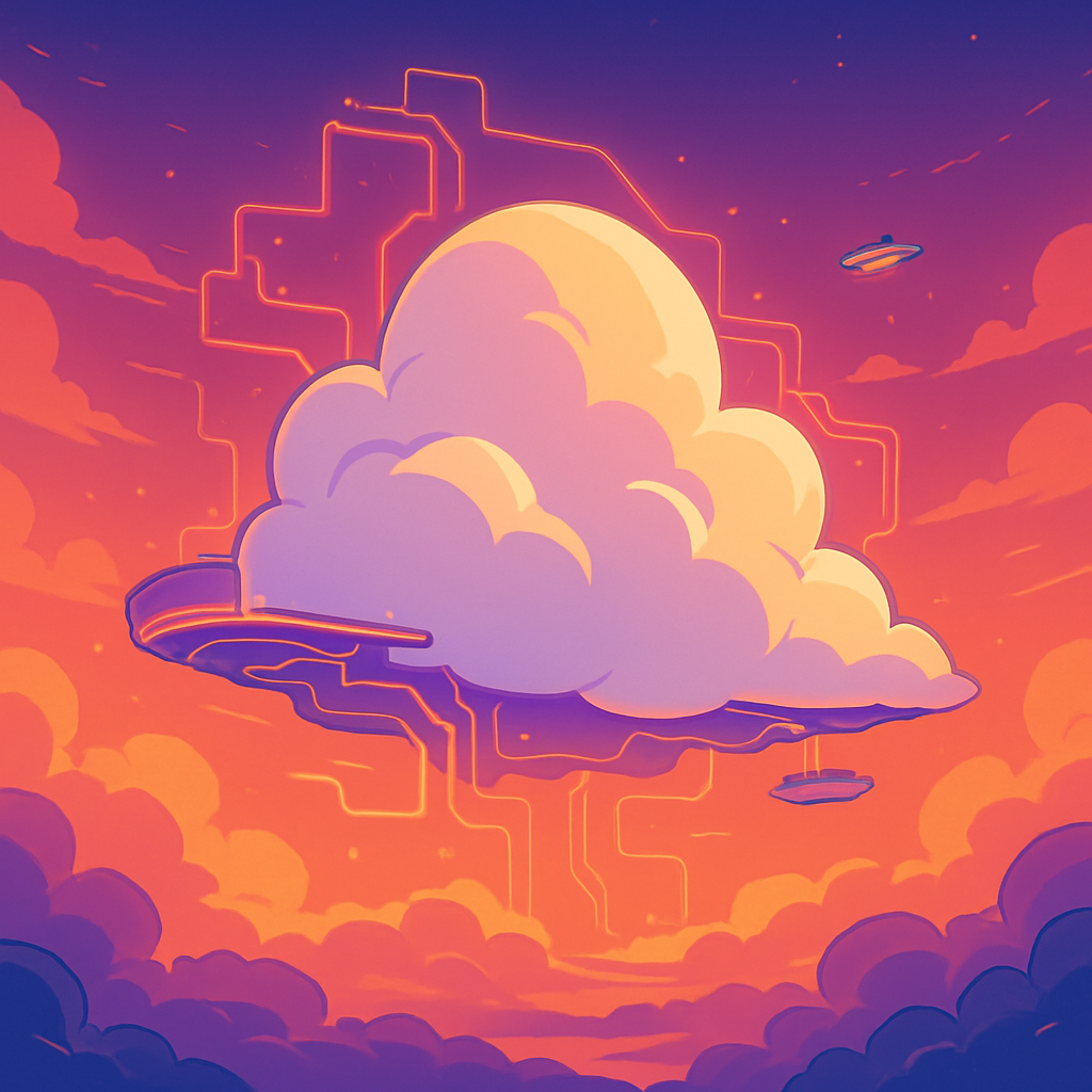 A floating fortress in the sky filled with translucent data bridges and drifting anti-gravity islands. Home to the elites and tech-lords.